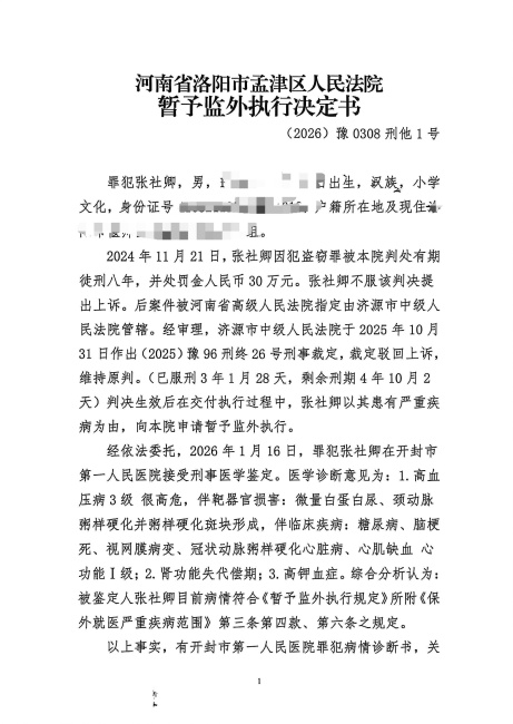 河南省洛阳市孟津区人民法院暂予监外执行决定书